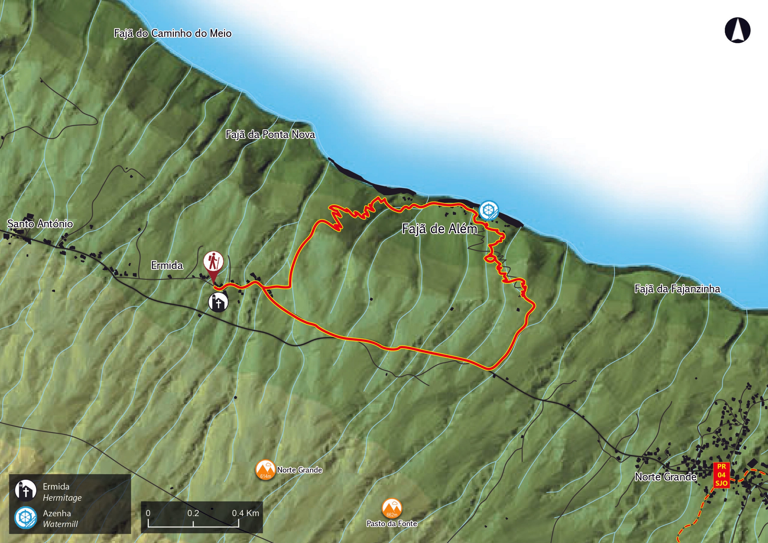 Sie beginnt an der Kapelle Ermida de Santo António, von wo aus Sie auf einem Feldweg starten. An der Weggabelung biegen Sie links ab und steigen hinunter zur Fajã.
