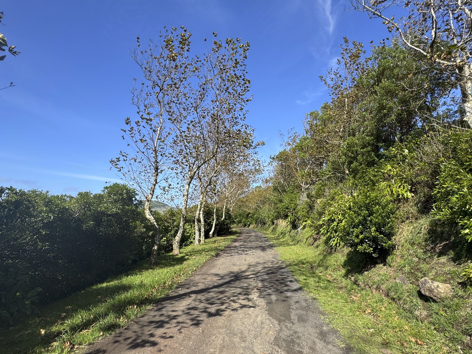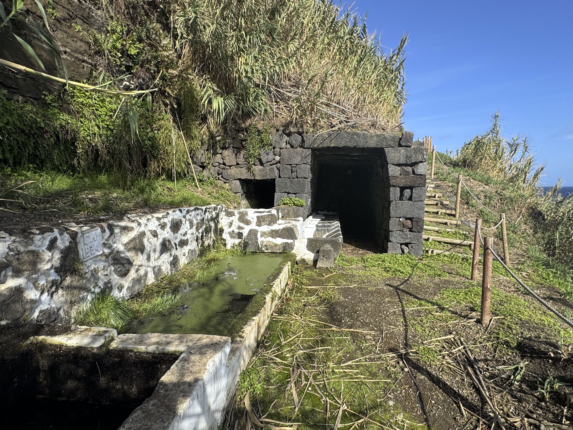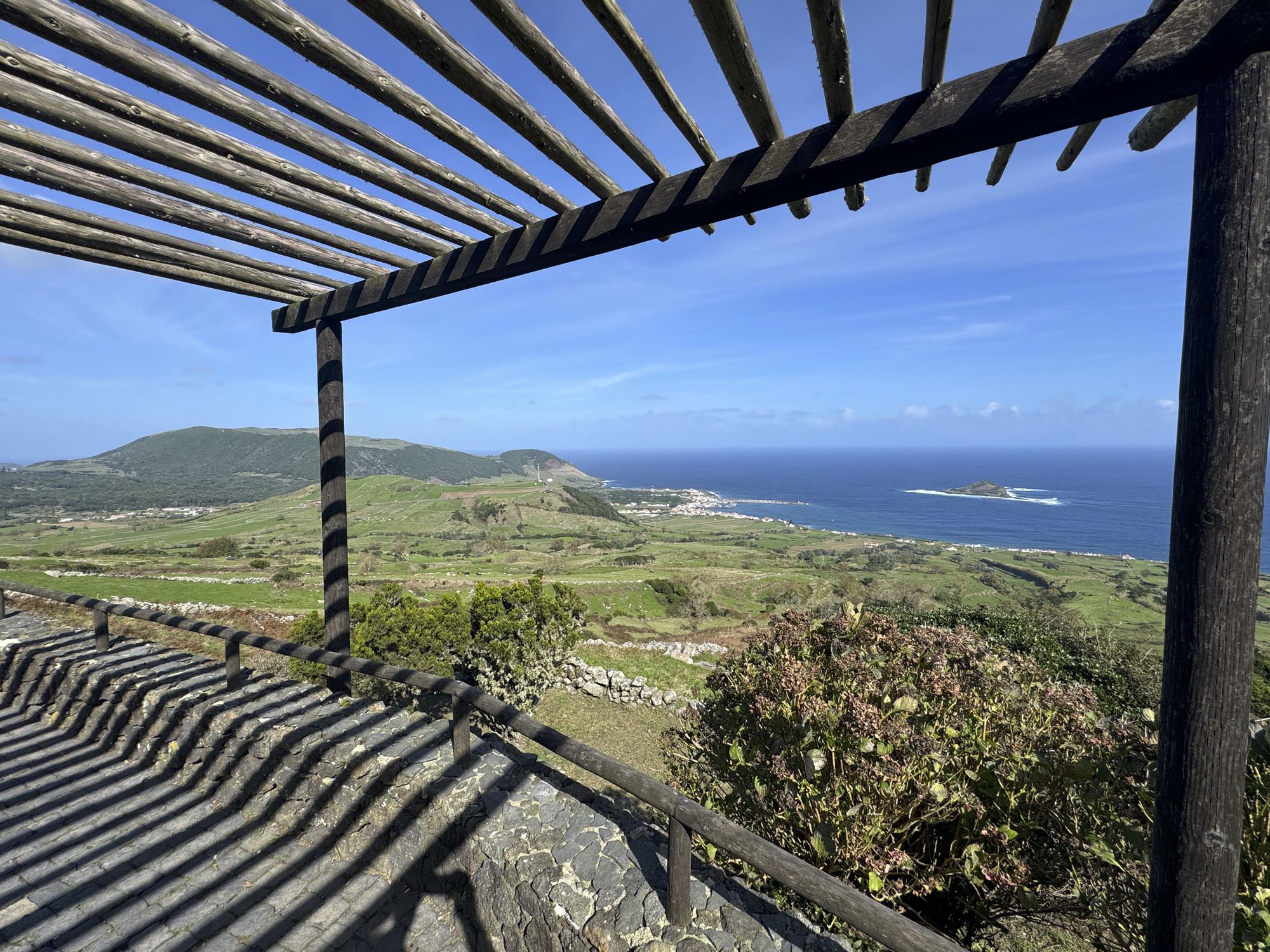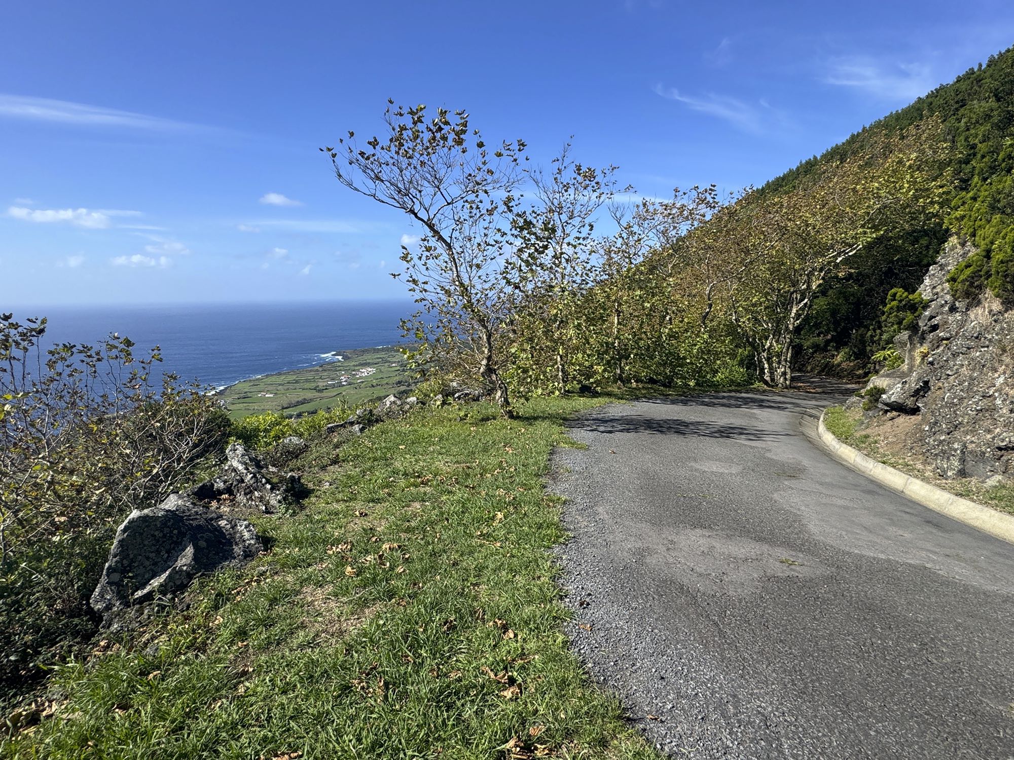 Von Praia de São Mateus aus steigen wir zunächst mühsam zum Rundweg um die Caldeira hinauf. Auf ihm genießen wir die Aussicht auf den gesamten Südteil von Graciosa. Bei guter Sicht sind auch die anderen Inseln der Zentralgruppe zu sehen. Bevor wir nach Carapacho mit seiner Therme absteigen, machen wir noch einen aussichtsreichen Abstecher zum Leuchtturm und Walausguck oberhalb der Ponta da Restinga.