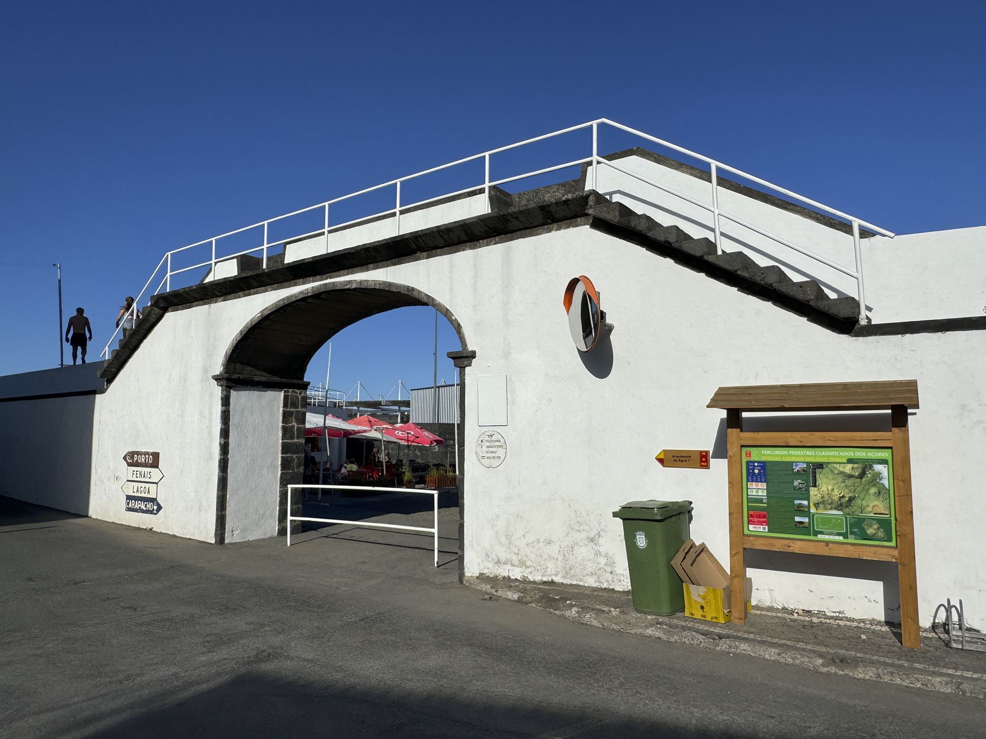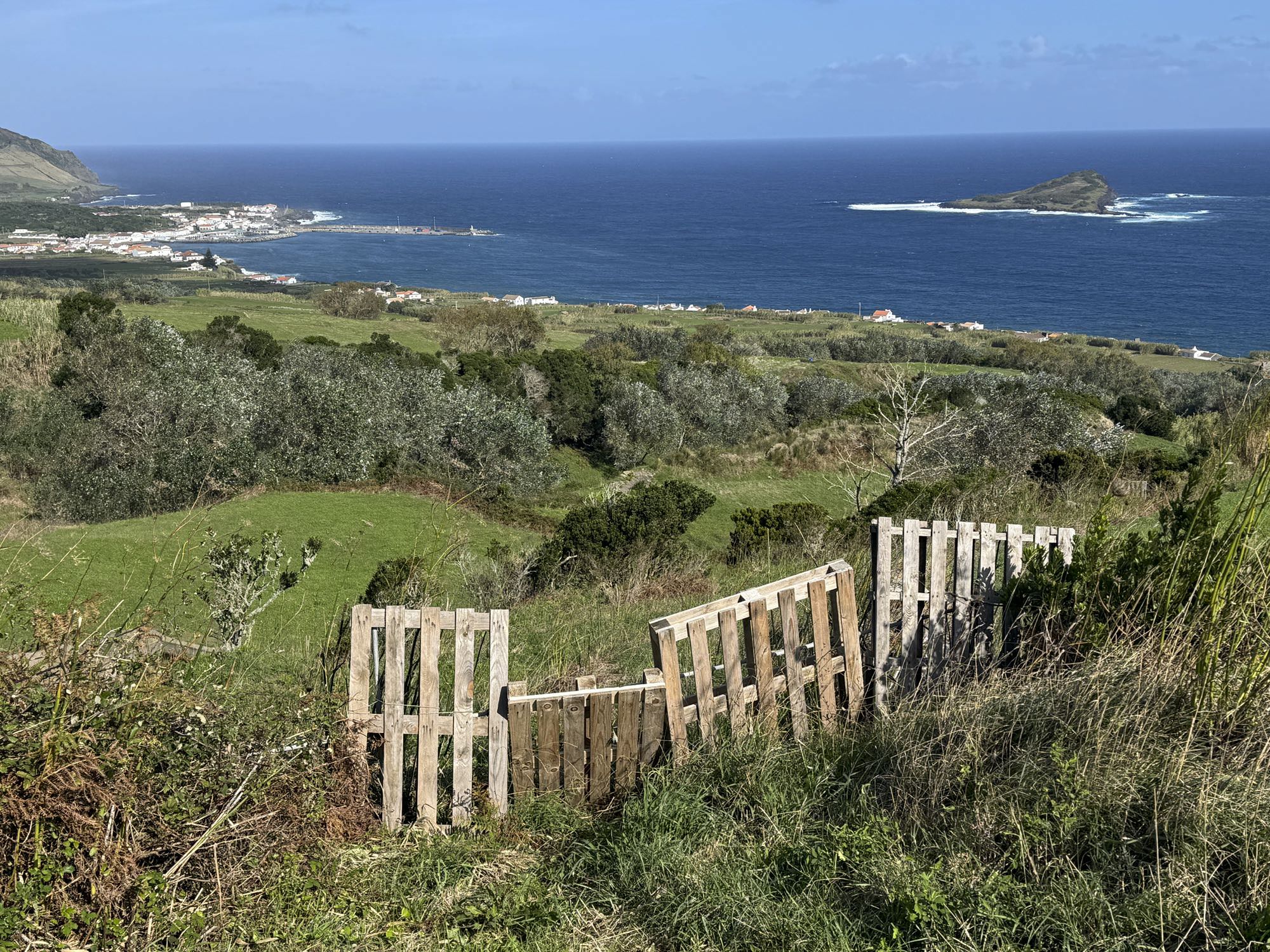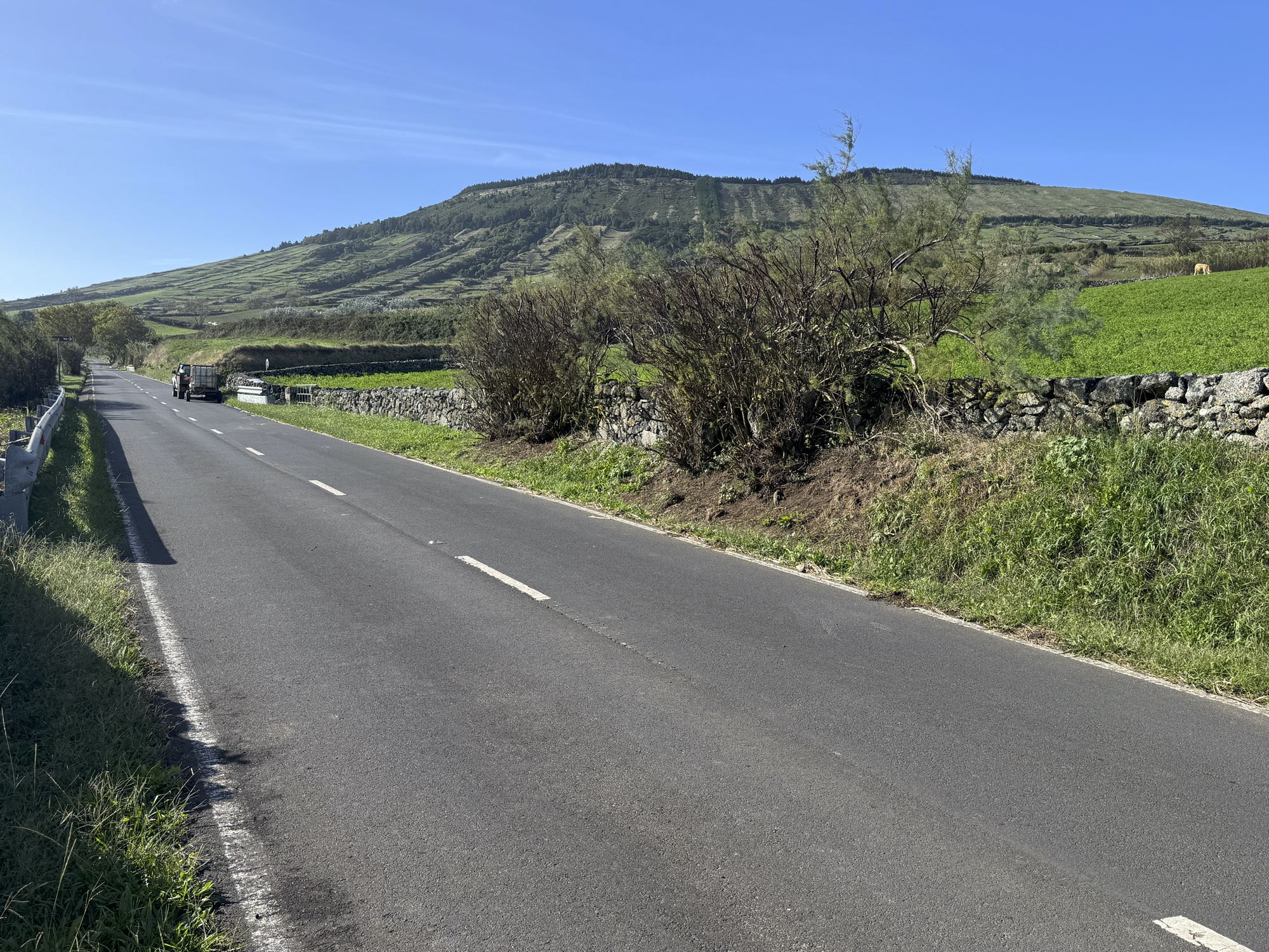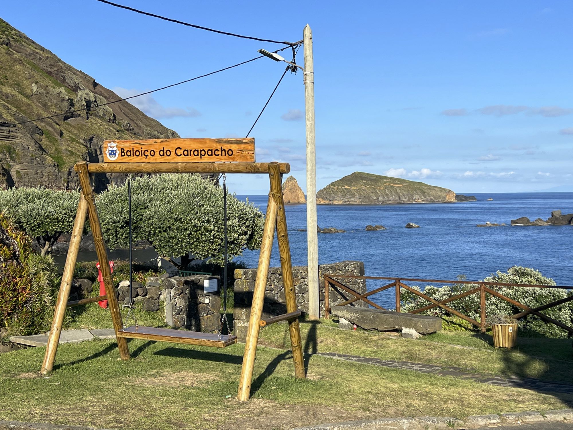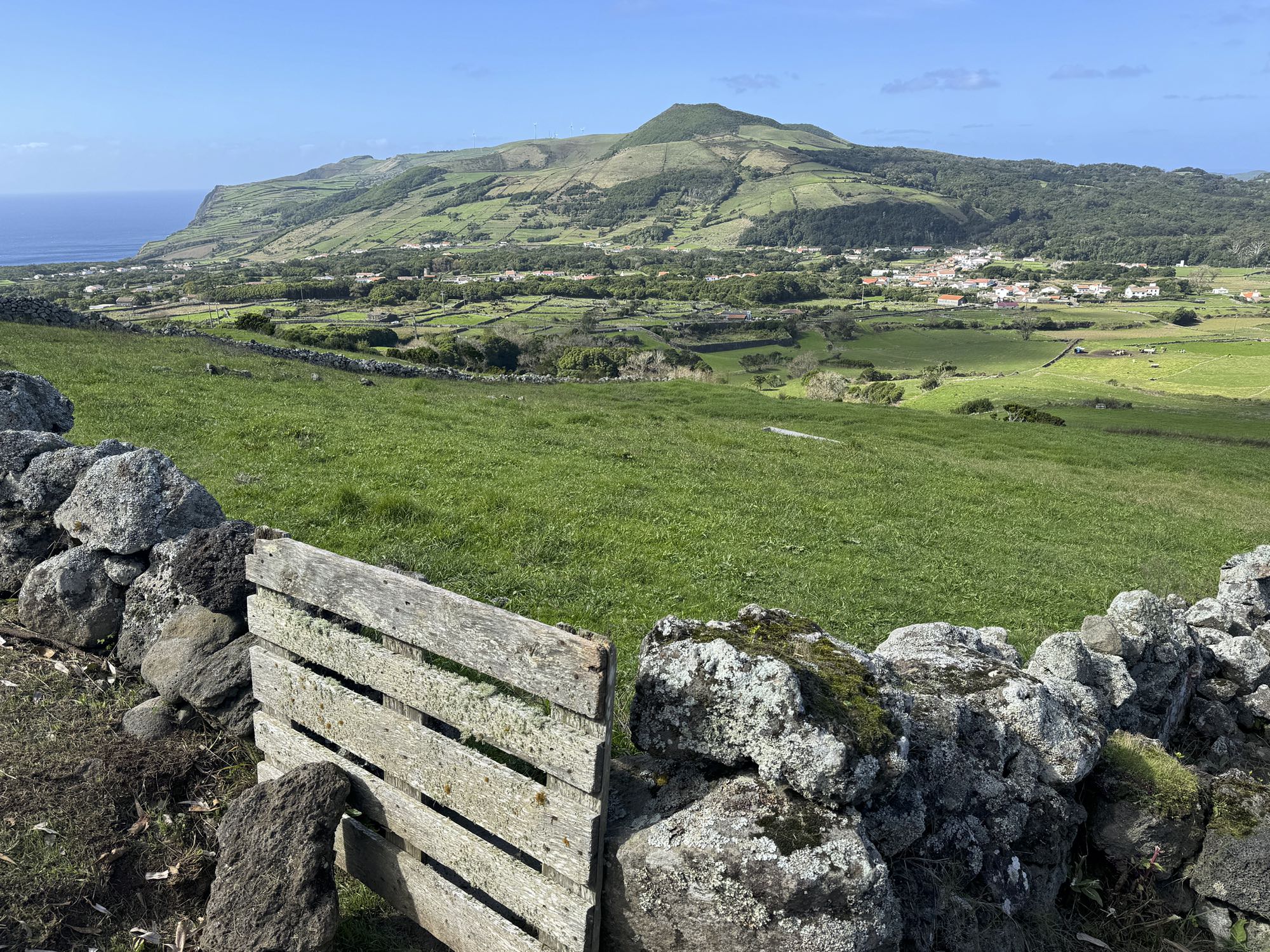 Von Praia de São Mateus aus steigen wir zunächst mühsam zum Rundweg um die Caldeira hinauf. Auf ihm genießen wir die Aussicht auf den gesamten Südteil von Graciosa. Bei guter Sicht sind auch die anderen Inseln der Zentralgruppe zu sehen. Bevor wir nach Carapacho mit seiner Therme absteigen, machen wir noch einen aussichtsreichen Abstecher zum Leuchtturm und Walausguck oberhalb der Ponta da Restinga.