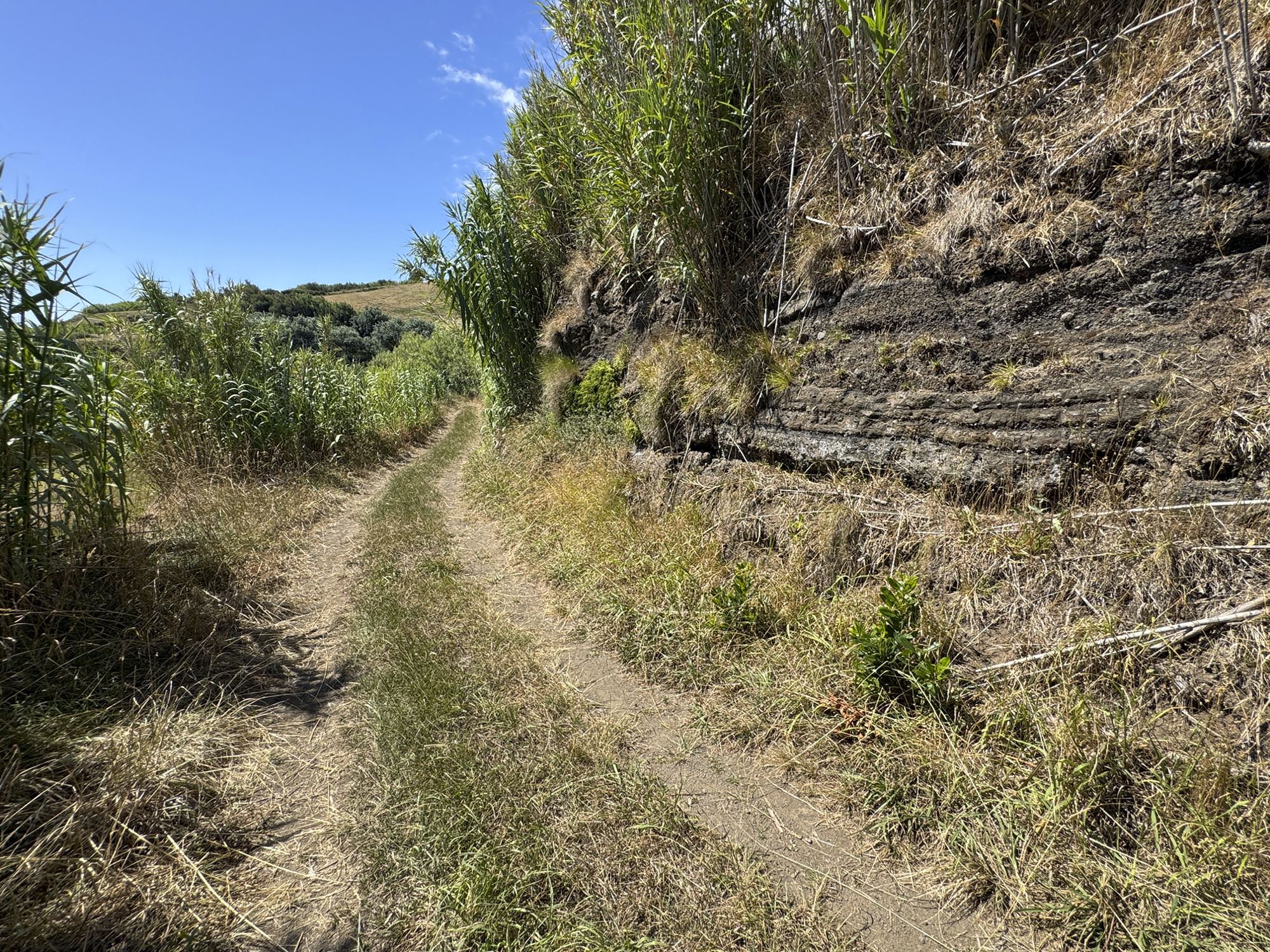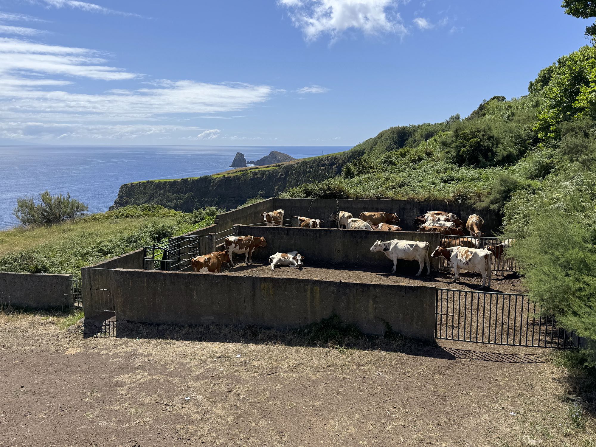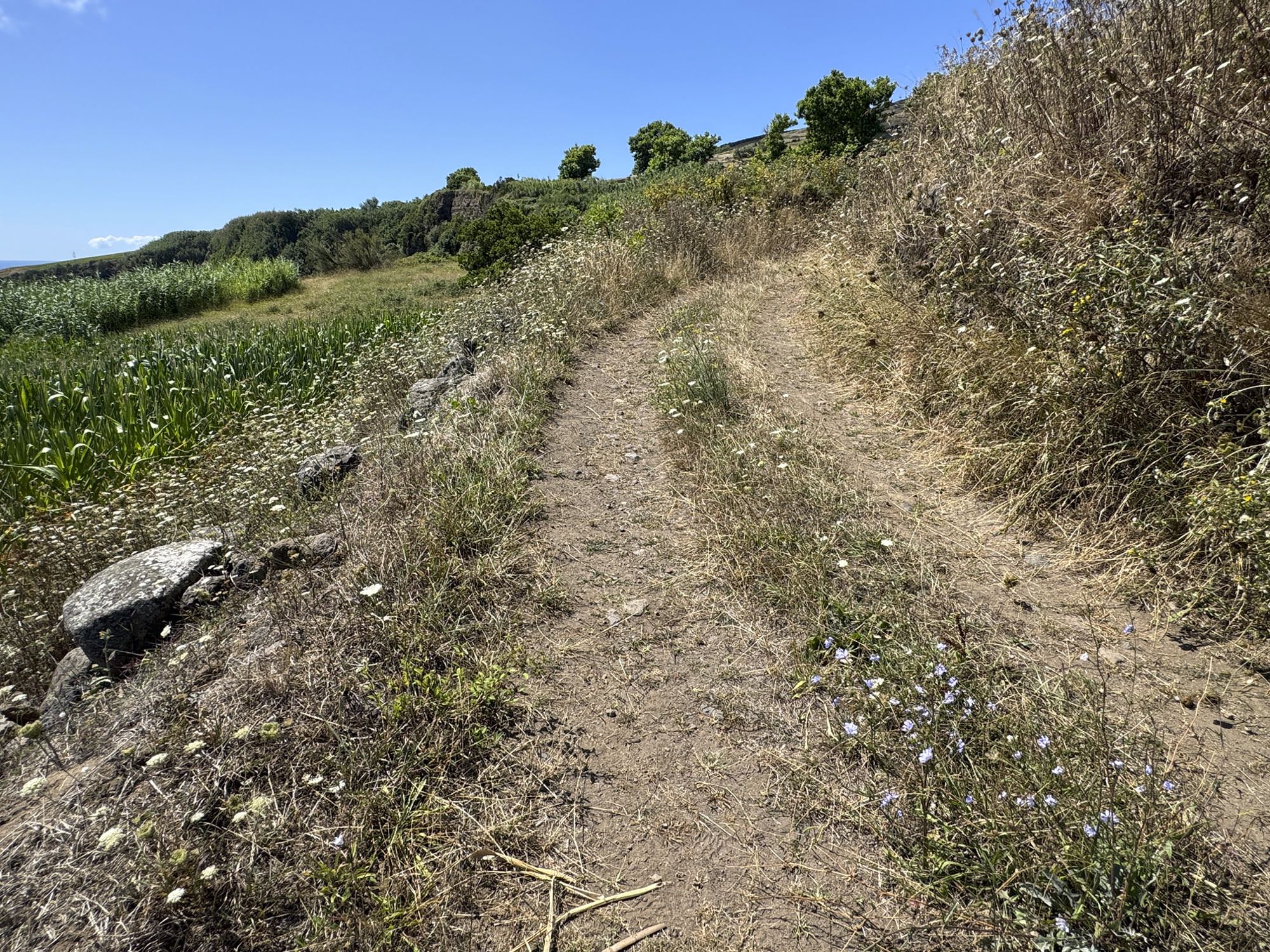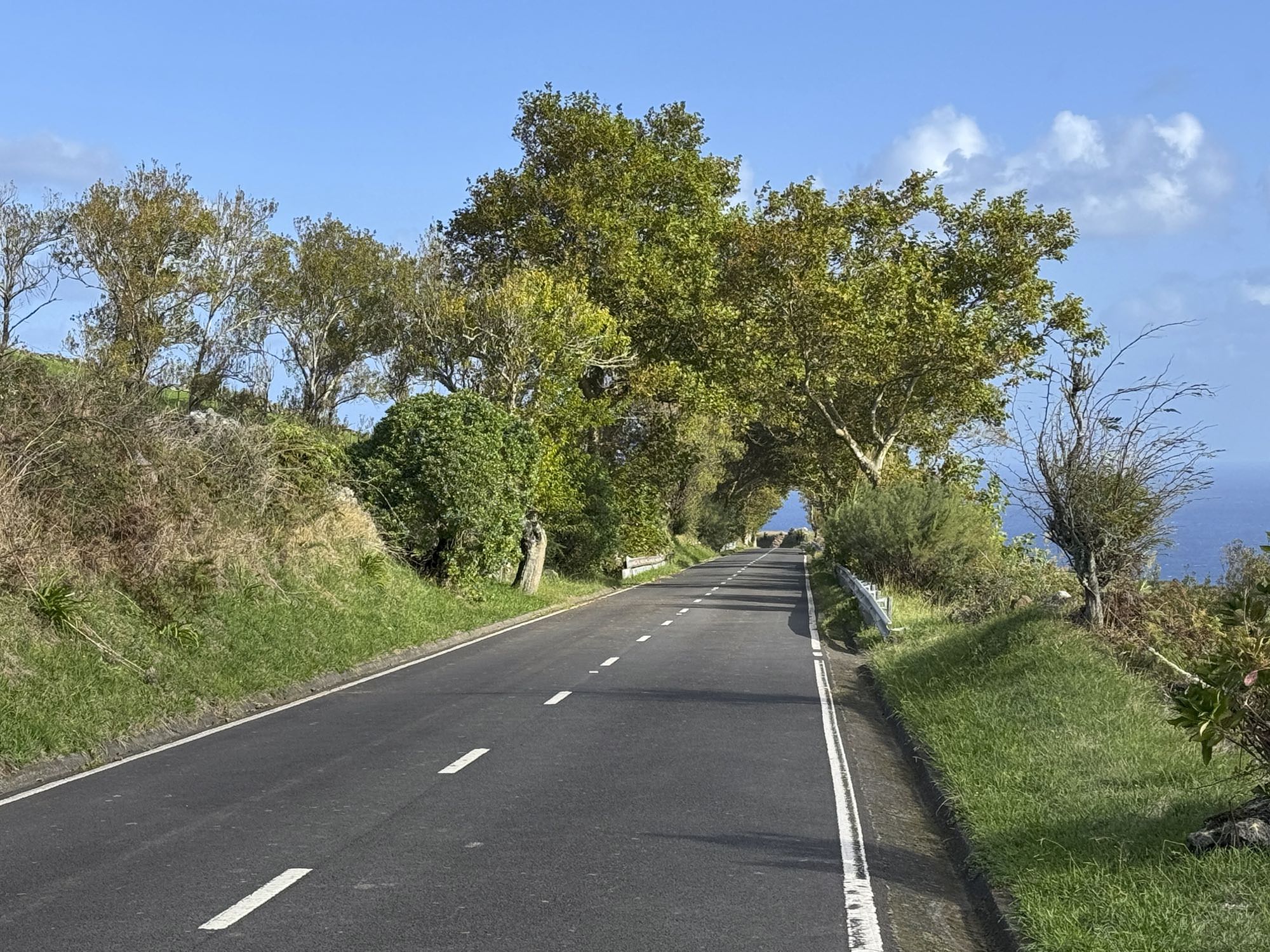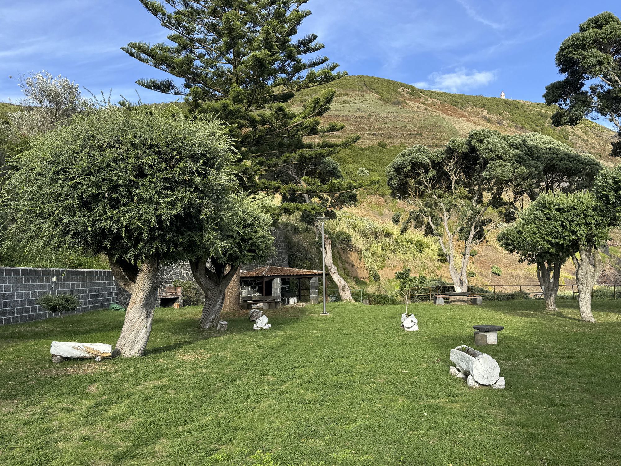Von Praia de São Mateus aus steigen wir zunächst mühsam zum Rundweg um die Caldeira hinauf. Auf ihm genießen wir die Aussicht auf den gesamten Südteil von Graciosa. Bei guter Sicht sind auch die anderen Inseln der Zentralgruppe zu sehen. Bevor wir nach Carapacho mit seiner Therme absteigen, machen wir noch einen aussichtsreichen Abstecher zum Leuchtturm und Walausguck oberhalb der Ponta da Restinga.