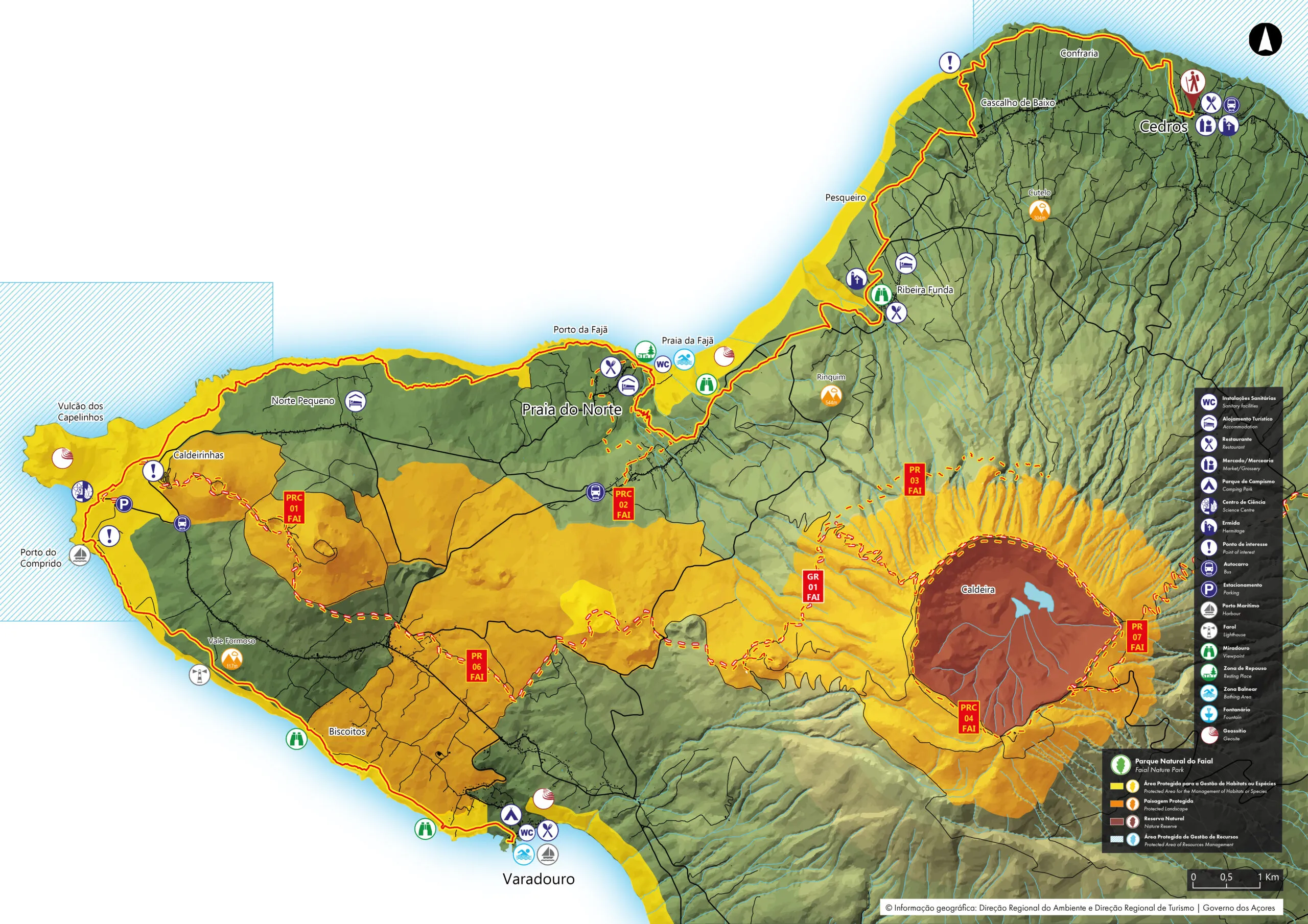 Im alten Hafen von Cedros gab es einen Walbeobachtungsposten, der durch das Erdbeben vom 9. Juli 1998 zerstört wurde. Auch der Vigia am Capelinhos ist eine Ruine. Am Cabeço da Vigia und Alto das Concheiras gibt es hingegen noch bestehende Lookouts, die die Walbeobachtung ermöglichen. Die Wanderung bietet auch mehrere landschaftlich interessante Punkte. So führt sie beispielsweise an den Aussichtspunkten Ribeira Funda, der sich an einem Picknickpark befindet, und Ribeira das Cabras vorbei. Von dort aus können Sie die Fajã der Gemeinde Praia do Norte sowie einen Teil der Halbinsel von Capelo bewundern.