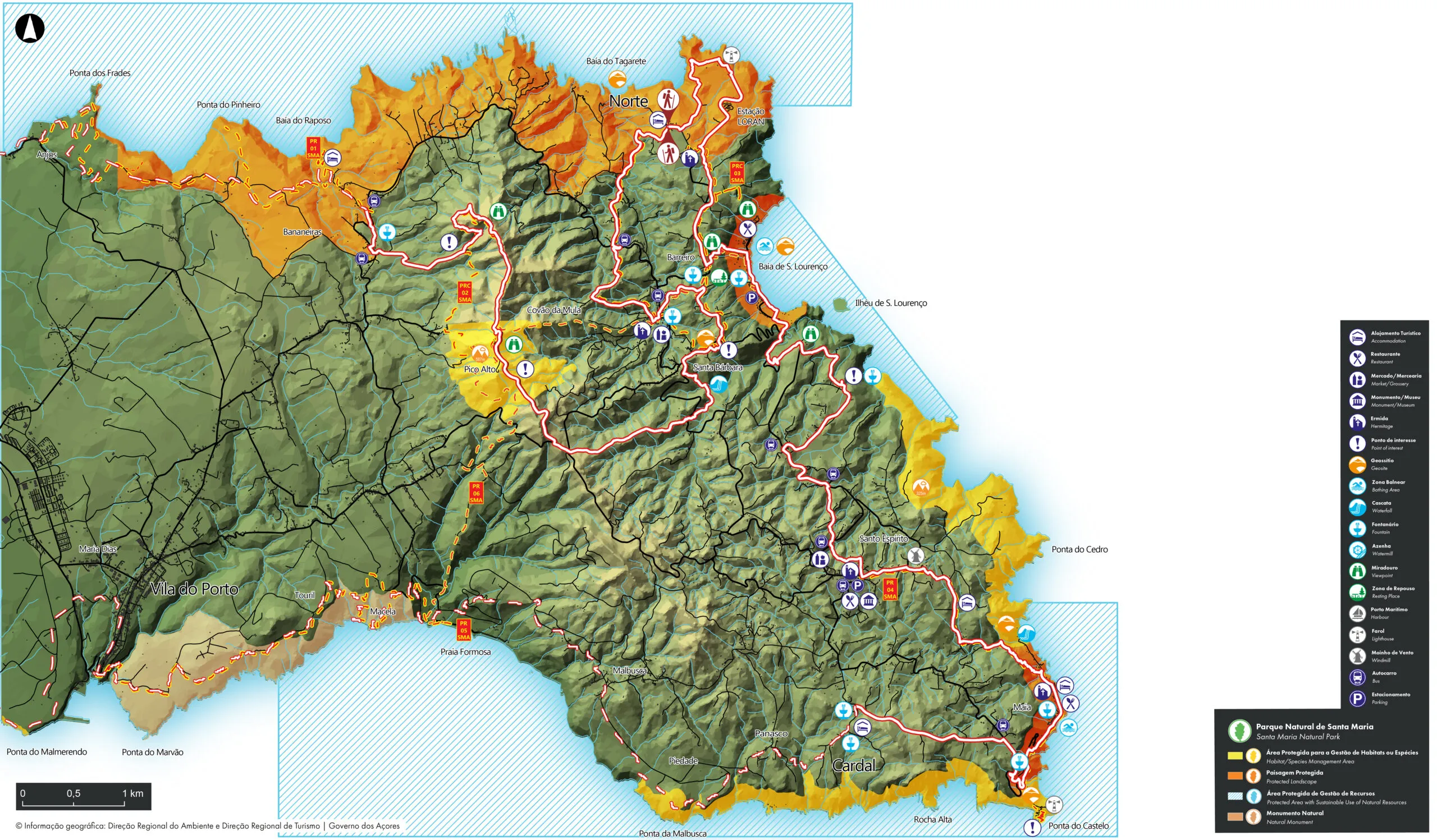 Der „Große Rundweg von Santa Maria“ umrundet die Insel auf einer Strecke von 78 Kilometern und führt durch geomorphologisch interessante Gebiete auf der ältesten Insel der Azoren (+/- 8 Millionen Jahre). Während der Wanderung wird das Alter der Insel durch verschiedene Erosionsphänomene und Veränderungen des Meeresspiegels deutlich, die der Insel ihre Einzigartigkeit verleihen und Sie an Orte von landschaftlicher Schönheit und wissenschaftlichem Interesse führen.