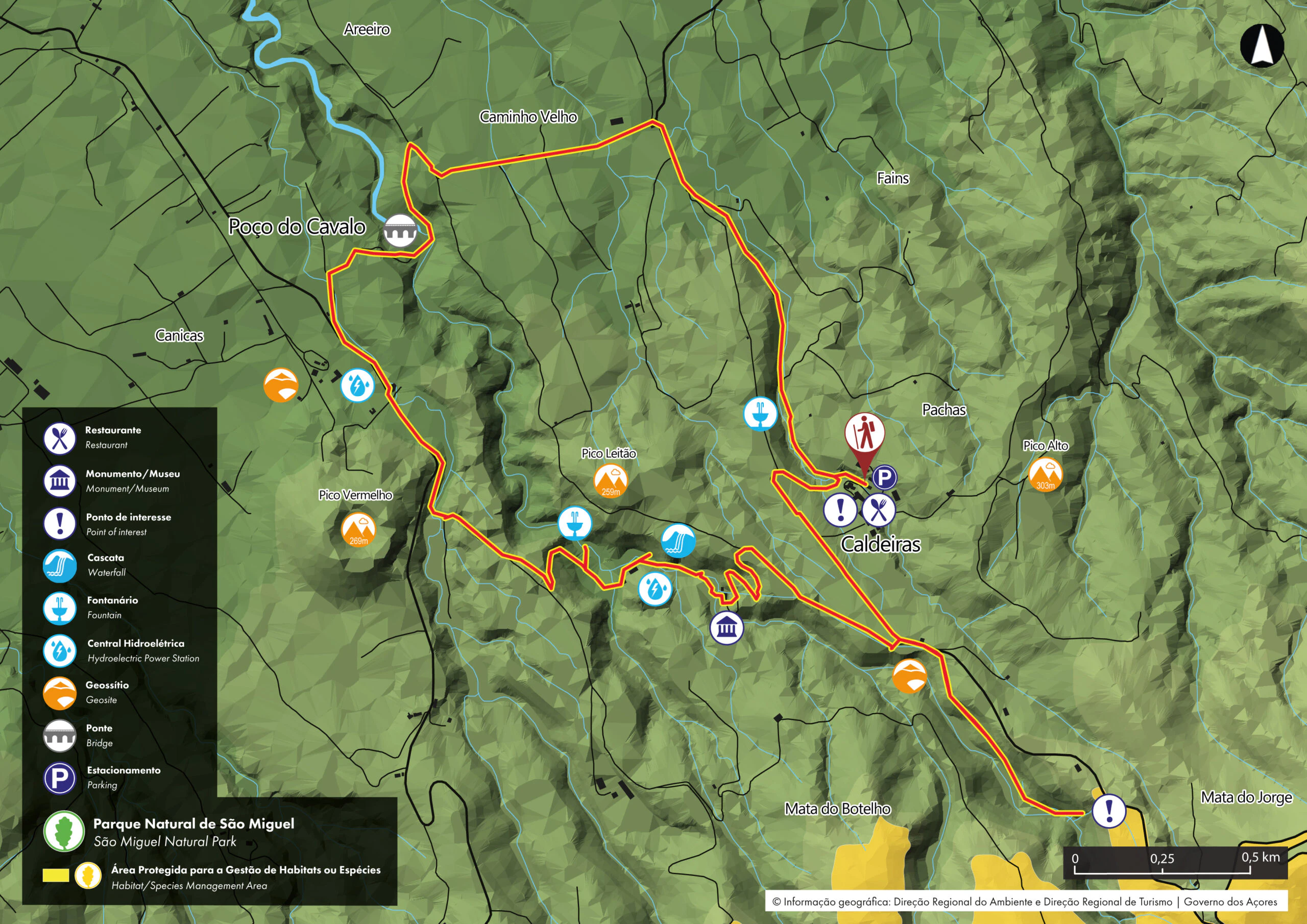 Die Wanderung zum Salto do Cabrito ist eine relativ kurze Rundwanderung mit Start und Ziel in Caldeiras da Ribeira Grande, einer kleinen Erholungsoase mit heißen Quellen, einem Thermalbad und einem Restaurant.