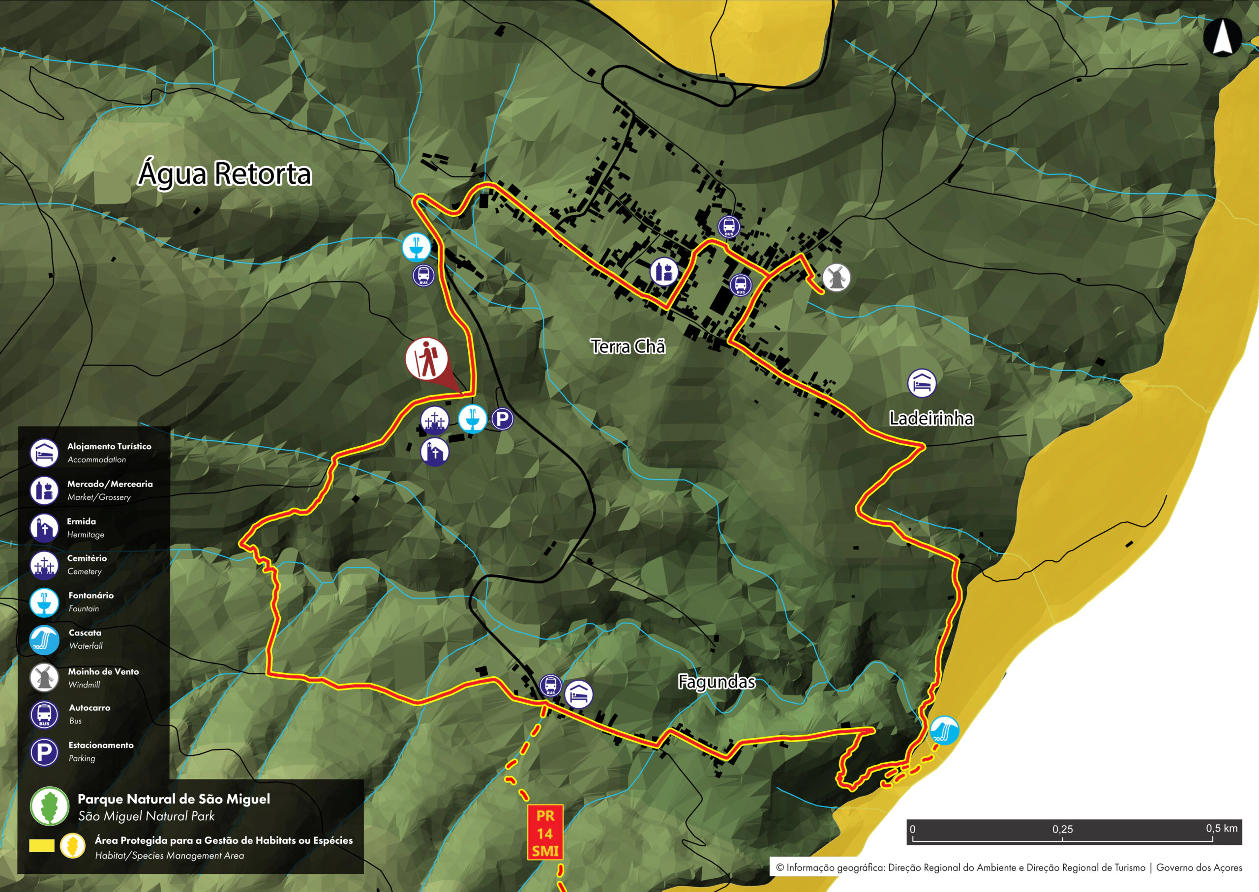 Dieser kleine Rundweg führt durch das Dorf Água Retorta in der Nähe des Schutzgebietes für Habitat- und Artenmanagement. Der Weg beginnt in der Nähe der Kirche Nossa Senhora da Penha de França, die zwischen 1871 und 1885 erbaut wurde. Der Glockenturm erinnert an eine alte Kapelle, die an dieser Stelle im 17.
