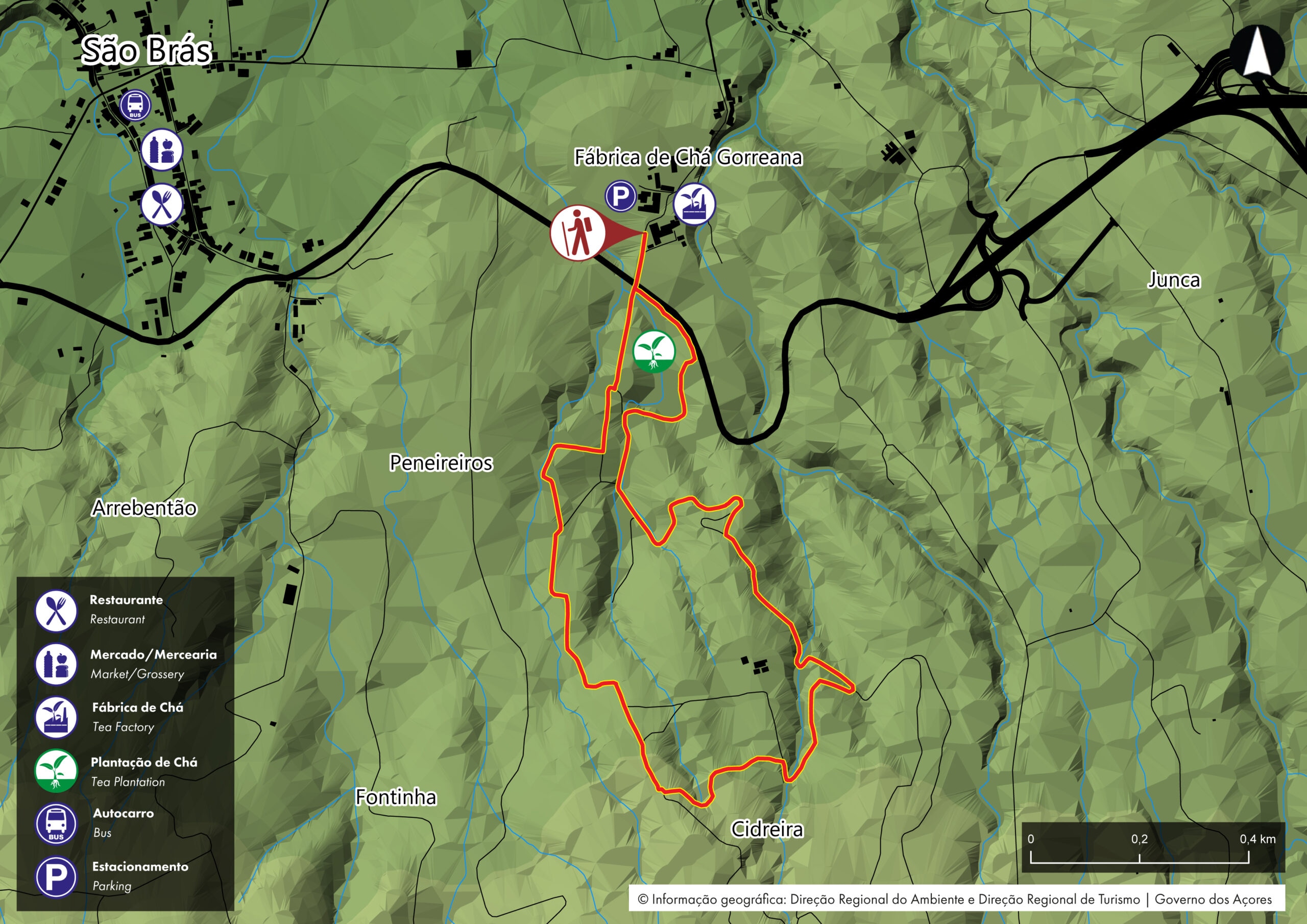Der Rundweg entlang der Teeplantagen beginnt am Parkplatz der Teefabrik Gorreana (Foto 1). Die Manufaktur ist seit 1883 in Betrieb und besitzt die älteste Teeplantage Europas. Die Pflanze, aus der grüner und schwarzer Tee hergestellt wird – Camellia sinensis – wurde erstmals 1750 mit Handelsschiffen aus dem Orient eingeführt.